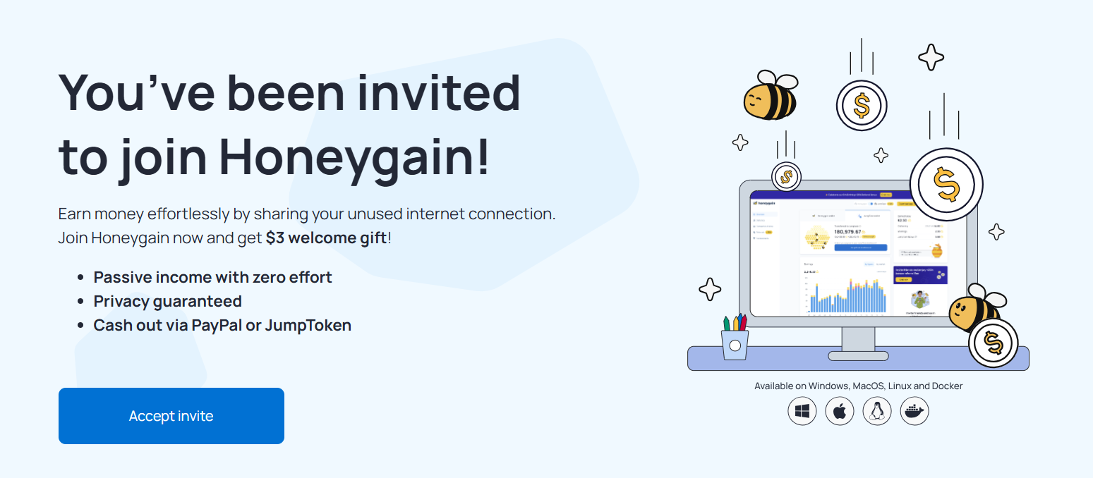 Get paid by do nothing! Best websites to make money passively. Just turn on app and start earn passive income right now! Earn by sharing your unused and useless internet traffic. Convert it into cash! Get $20 sign up bonus!